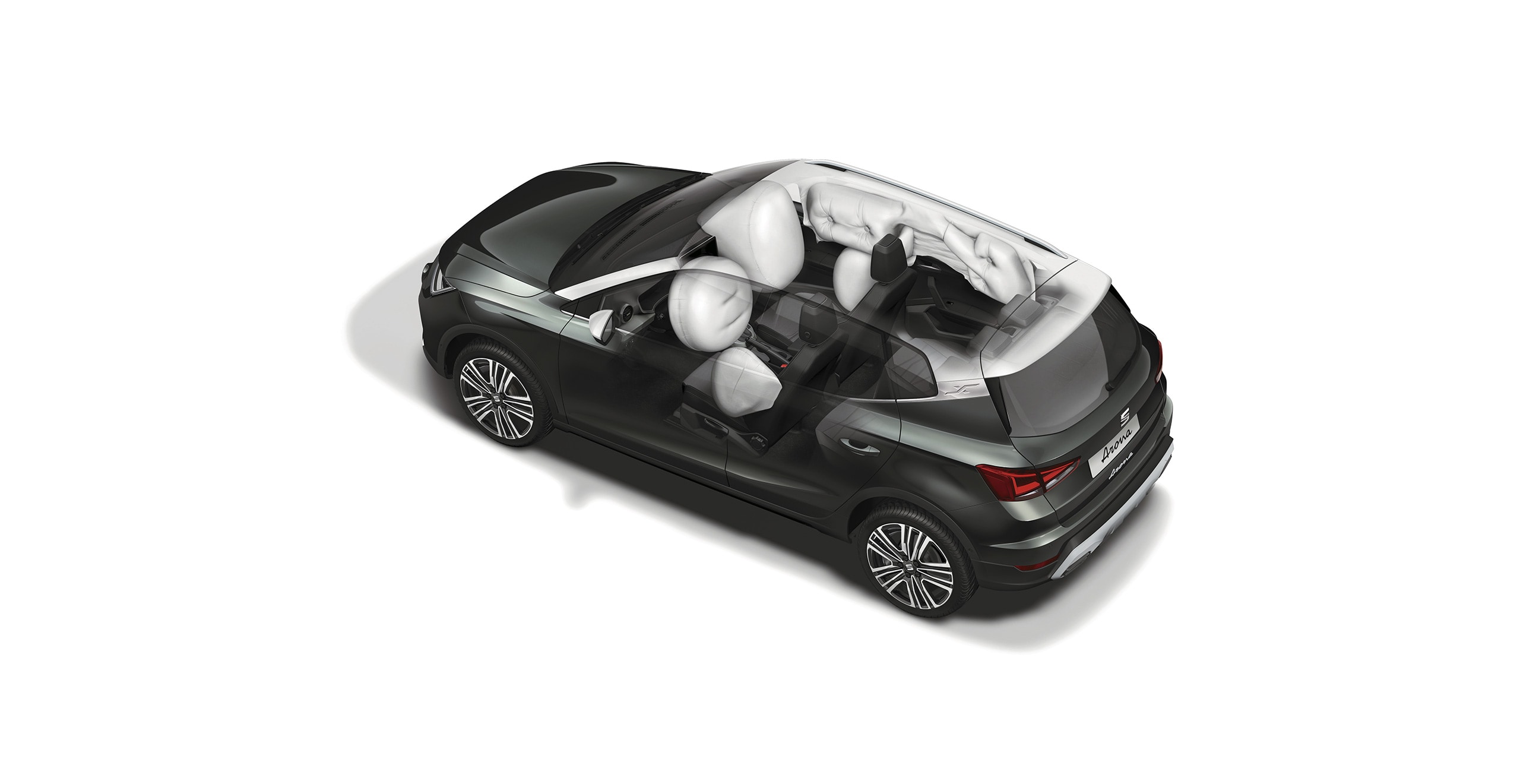 Protegido en todos los ángulos, SEAT Arona 2026 equipado con 6 bolsas de aire (Bolsas de aire frontales y laterales para conductor y pasajero y tipo cortina) para que siempre puedas confiar en su seguridad.