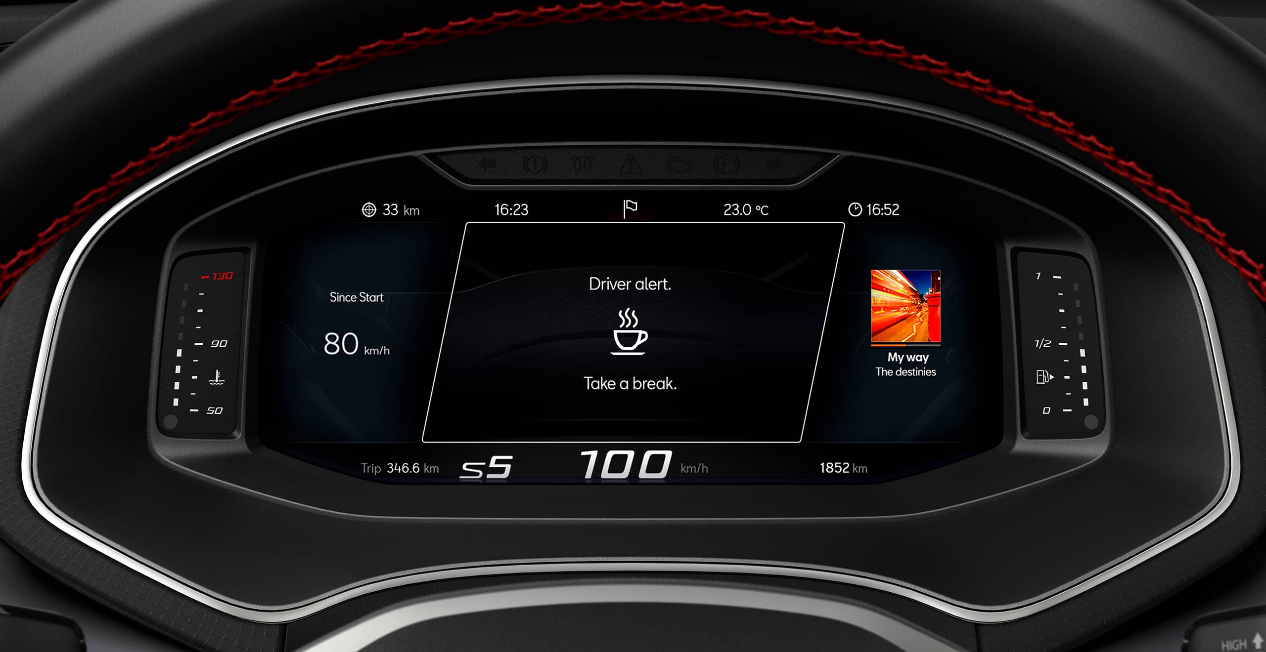 El Reconocimiento de cansancio del conductor, detecta cuando estás cansado y si tu estilo de manejo ha cambiado, emite una alerta visual y acústica hasta que tomes un descanso.